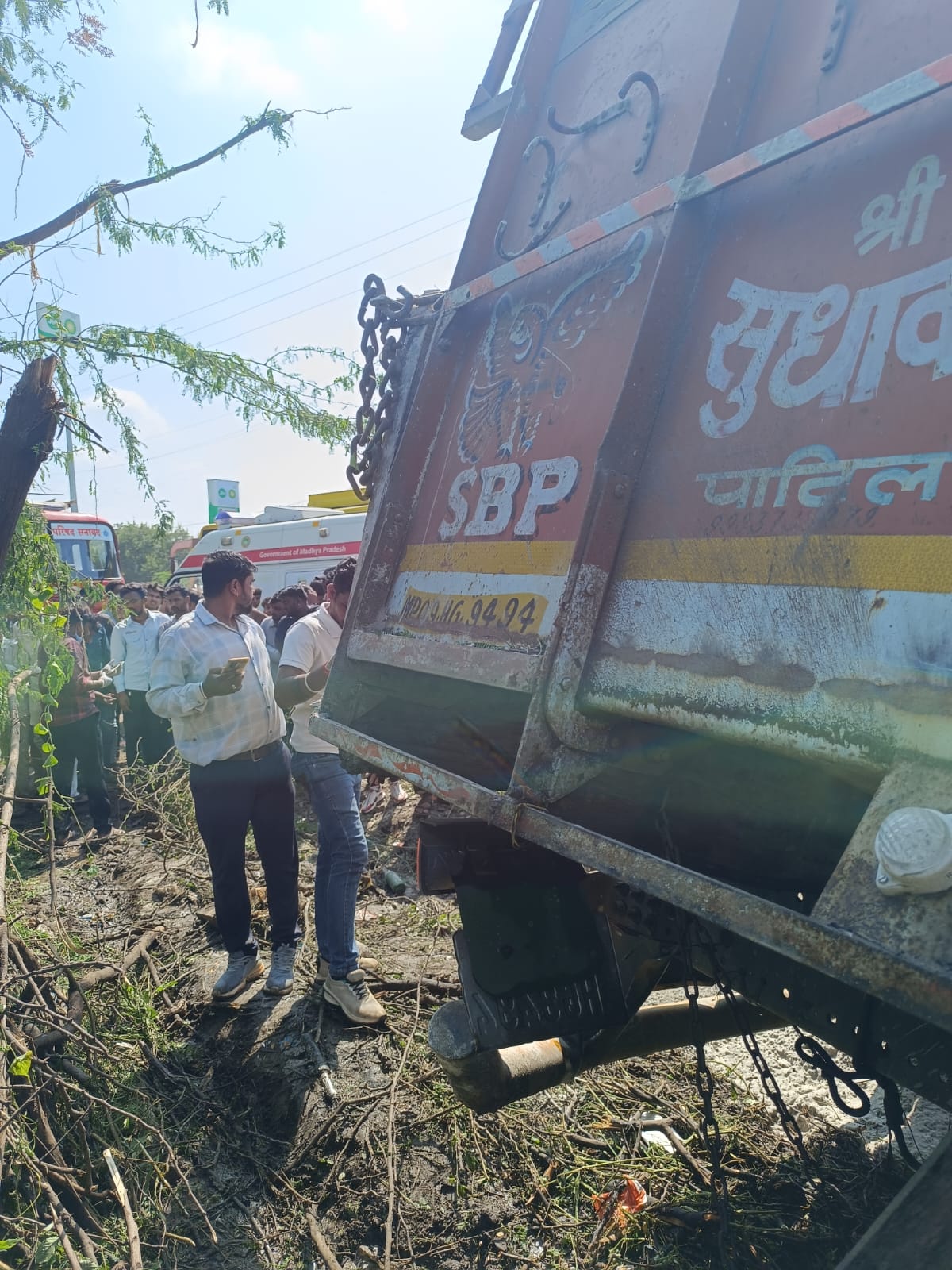 सनावद/खरगोन। इंदौर-इच्छापुर राजमार्ग पर स्थित रिलायंस पेट्रोल पंप, सनावद के पास आज (रविवार) दोपहर लगभग 3:30 से 4:00 बजे के बीच एक भयानक सड़क हादसे में मोटरसाइकिल सवार दो युवकों की दर्दनाक मौत हो गई। राखड़ (फ्लाई ऐश) से भरा एक तेज रफ्तार ट्रक अनियंत्रित हो गया और उसने पहले मोटरसाइकिल को टक्कर मारी, फिर सामने से आ रही एक यात्री बस से जा भिड़ा।