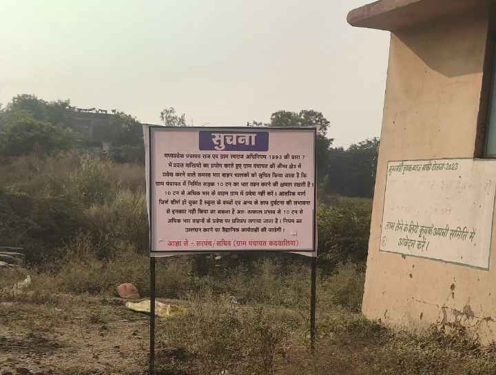 मध्यप्रदेश के बड़वाह क्षेत्र के ग्राम खोड़ी में ग्राम पंचायत कदवालिया ने शराब कंपनी के भारी वाहनों के कारण हो रहे सड़क क्षरण और आमजन की परेशानी को लेकर बड़ा कदम उठाया है। पंचायत द्वारा सार्वजनिक सूचना पट्ट पर यह स्पष्ट किया गया है कि मप्र पंचायत राज एवं ग्राम स्वराज अधिनियम 1993 की धारा 7 के अंतर्गत 10 टन से अधिक वजनी वाहनों के प्रवेश पर पूर्णतः प्रतिबंध लगाया गया है