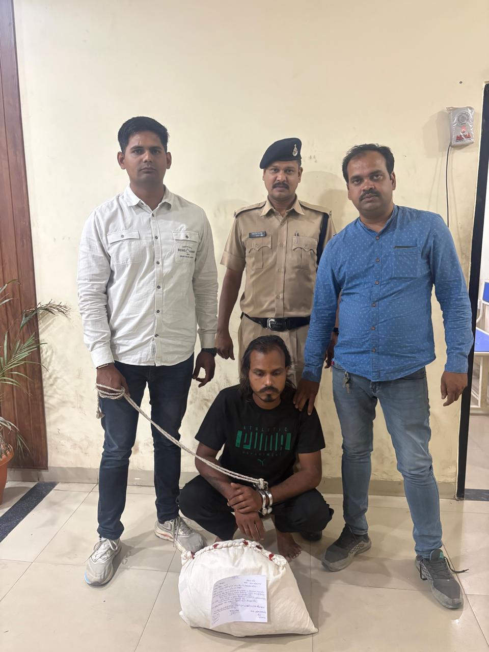 “चेकिंग के दौरान एक संदिग्ध व्यक्ति पुलिस को देखकर भागने लगा, जिसे घेराबंदी कर पकड़ा गया। तलाशी लेने पर उसके कब्जे से 2 किलो 916 ग्राम गांजा बरामद हुआ।”