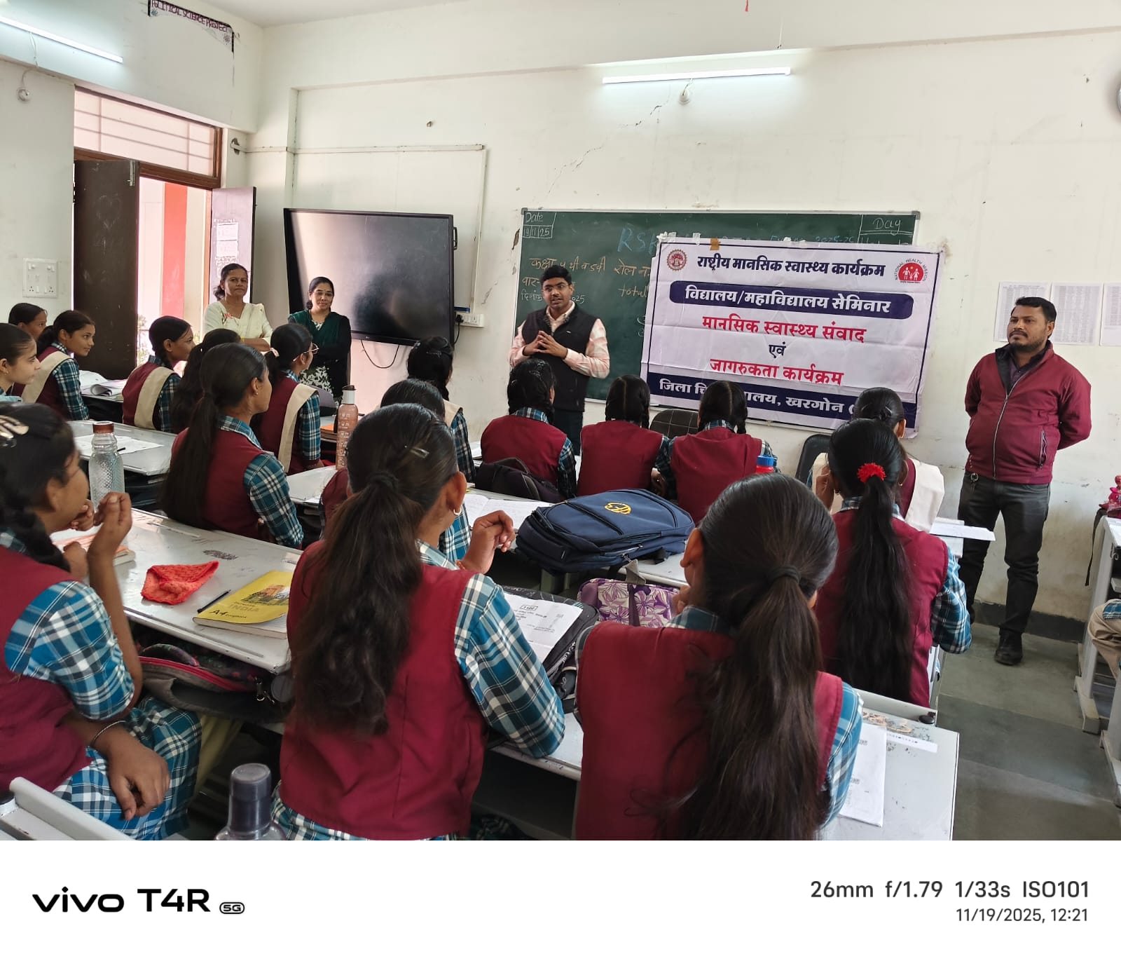 राष्ट्रीय स्वास्थ्य मिशन, मध्यप्रदेश द्वारा संचालित राष्ट्रीय मानसिक स्वास्थ्य कार्यक्रम के अंतर्गत आज दिनांक 19 नवंबर 2025 को सीएचसी उमंग स्वास्थ्य केंद्र बड़वाह और सांदीपनि विद्यालय शासकीय कन्या हायर सेकंडरी स्कूल बड़वाह में मानसिक स्वास्थ्य शिविर एवं जागरूकता कार्यक्रम आयोजित किया गया। शिविर का संचालन मानसिक रोग विशेषज्ञ डॉ. रितेश गुर्जर द्वारा किया गया।