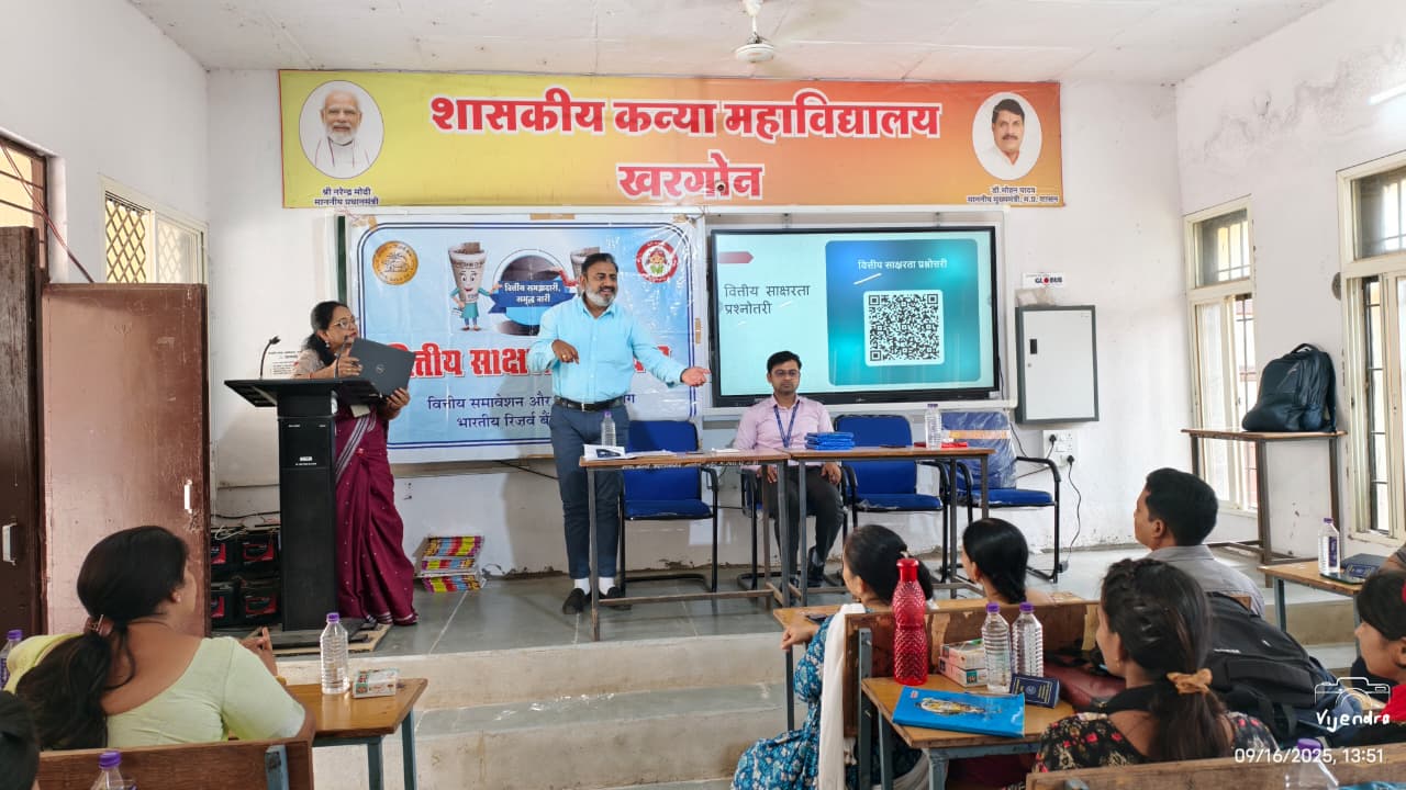 शासकीय कन्या शाला में छात्राओं के लिए वित्तीय साक्षरता एवं वित्तीय समावेशन विषय पर एक दिवसीय कार्यशाला का आयोजन किया गया। इस कार्यशाला में लगभग 140 छात्राओं एवं उनके अध्यापकों ने उत्साहपूर्वक भाग लिया।