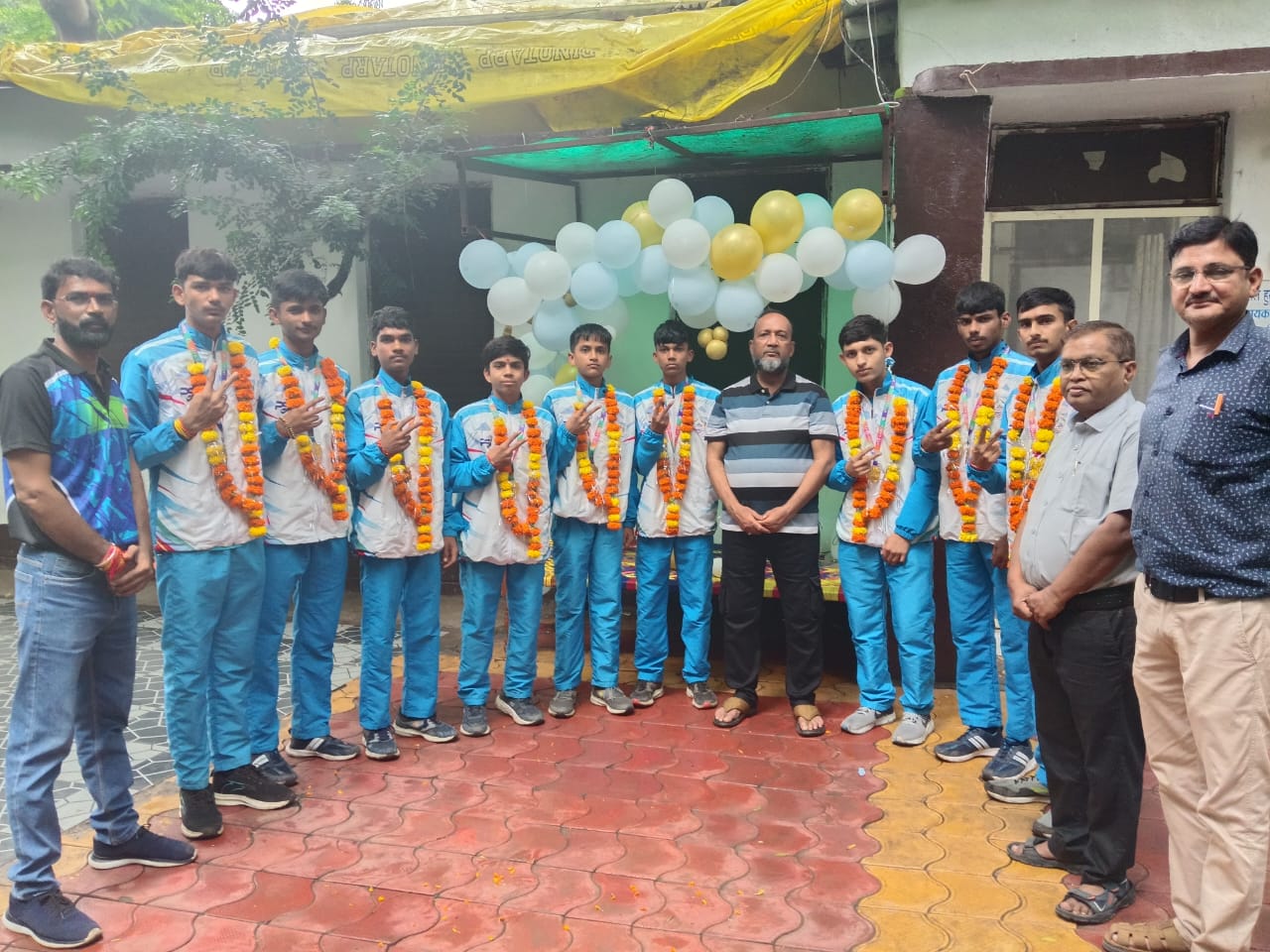 जीत के बाद भारत लौटने पर जनजातीय कार्य विभाग के सहायक आयुक्त श्री इकबाल हुसैन आदिल और जिला क्रीड़ा अधिकारी श्री अश्विन गुप्ता ने खिलाड़ियों को पुष्पमाला पहनाकर और मिठाई खिलाकर सम्मानित किया।