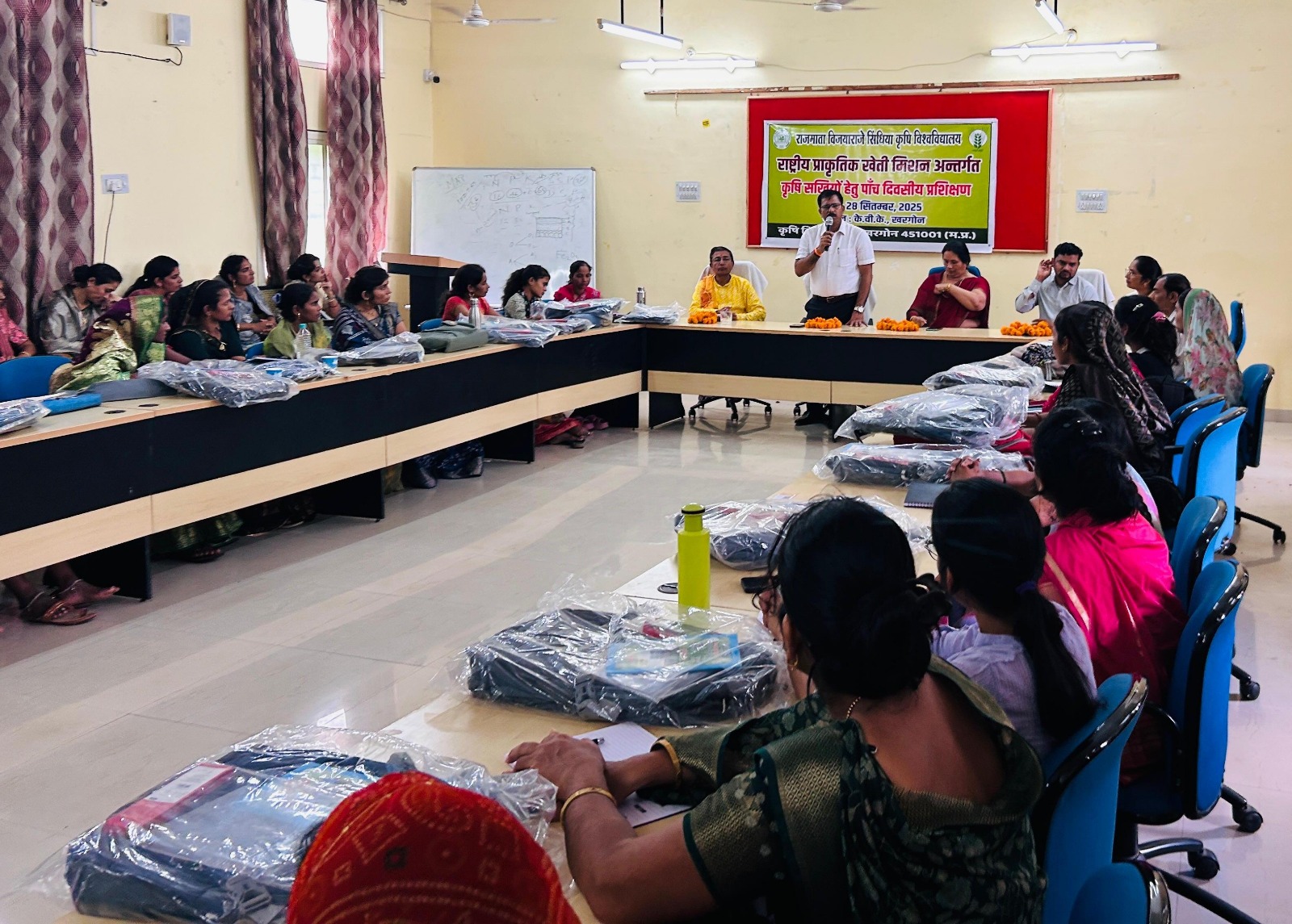 भारत सरकार के कृषि एवं किसान कल्याण मंत्रालय की राष्ट्रीय प्राकृतिक खेती मिशन (एनएमएनएफ) के अंतर्गत आत्मा योजना के तहत 05 दिवसीय प्रशिक्षण कार्यक्रम का आयोजन कृषि विज्ञान केन्द्र खरगोन में किया गया। इसमें जिले की 96 कृषि सखियों को प्राकृतिक खेती की उन्नत तकनीक और जैविक उत्पाद बनाने का प्रशिक्षण दिया गया।