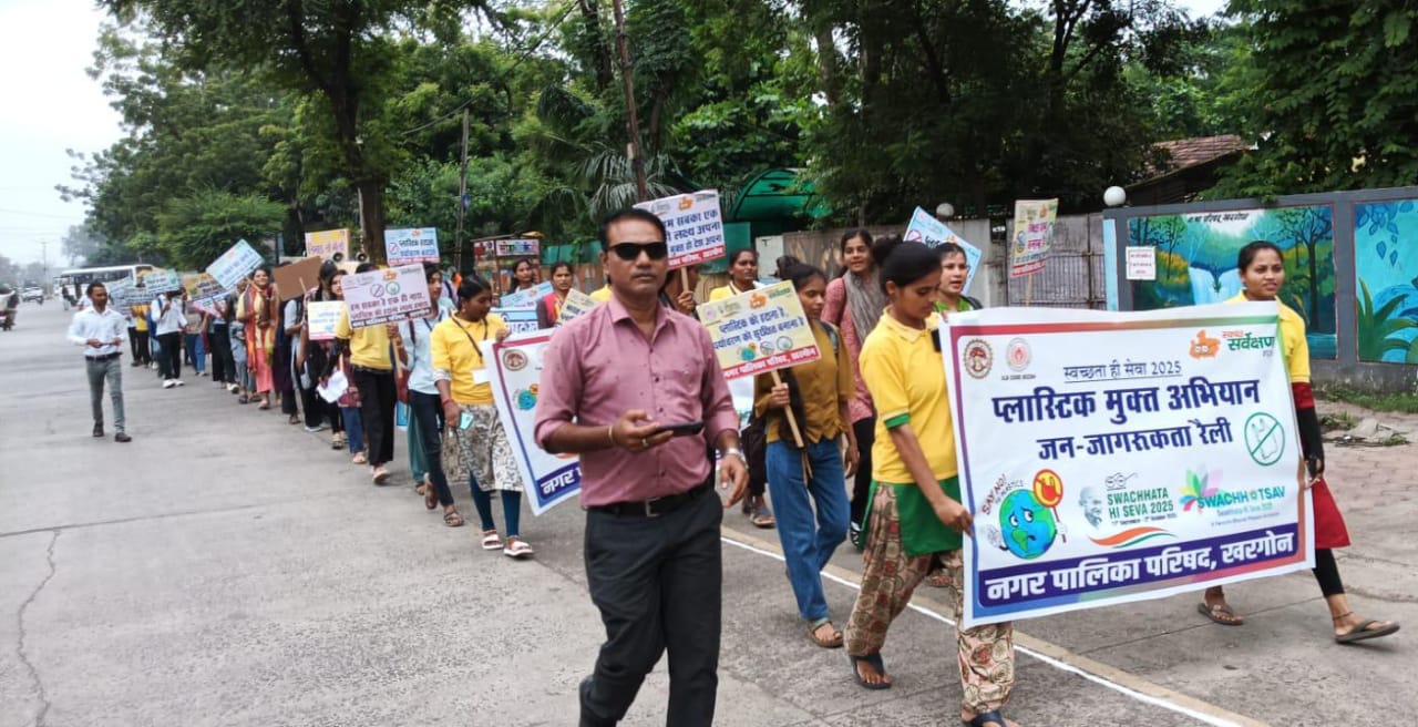 नगर पालिका परिषद खरगोन द्वारा स्वच्छता ही सेवा अभियान के दूसरे दिन प्लास्टिक मुक्त जनजागरूकता रैली का आयोजन किया गया। इस रैली को नगर पालिका अध्यक्ष श्रीमती छाया जोशी ने सभापति और पार्षदगण की उपस्थिति में हरी झंडी दिखाकर रवाना किया।
