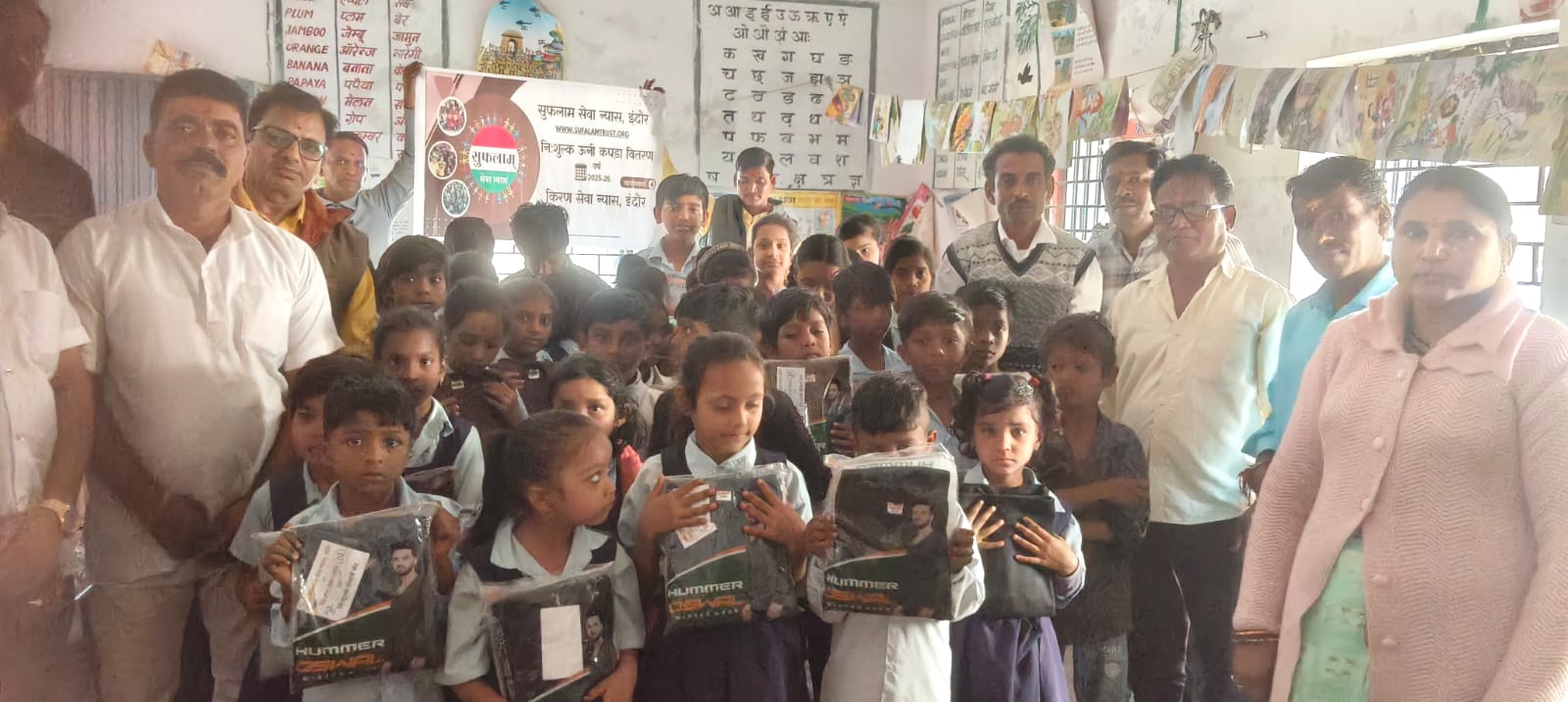 सर्दी के मौसम को देखते हुए सुफलाम सेवा न्यास एवं किरण सेवा न्यास, इंदौर द्वारा समाजसेवी पहल के तहत शासकीय विद्यालयों में अध्ययनरत बच्चों को गर्म कपड़े एवं स्वेटर वितरित किए गए। यह सेवा कार्यक्रम शासकीय स्कूल जैमलपुरा, हीरापुर एवं ग्राम बावड़ी खेड़ा में आयोजित किया गया, जहां बड़ी संख्या में बच्चों को ठंड से राहत मिली।