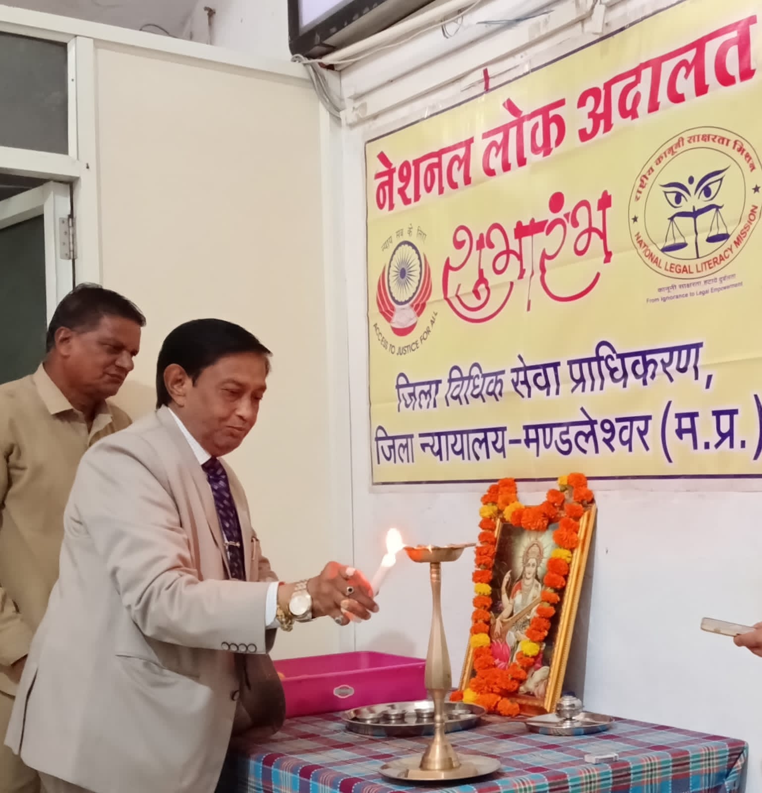 म.प्र. राज्य विधिक सेवा प्राधिकरण, जबलपुर के निर्देश पर 13 सितंबर को जिलेभर के न्यायालयों सहित जिला न्यायालय में नेशनल लोक अदालत का आयोजन किया गया। मुख्यालय मण्डलेश्वर में आयोजित इस लोक अदालत का शुभारंभ प्रधान जिला न्यायाधीश एवं अध्यक्ष, जिला विधिक सेवा प्राधिकरण, मण्डलेश्वर श्री अखिलेश जोशी ने माँ सरस्वती के चित्र पर माल्यार्पण एवं दीप प्रज्ज्वलन कर किया।