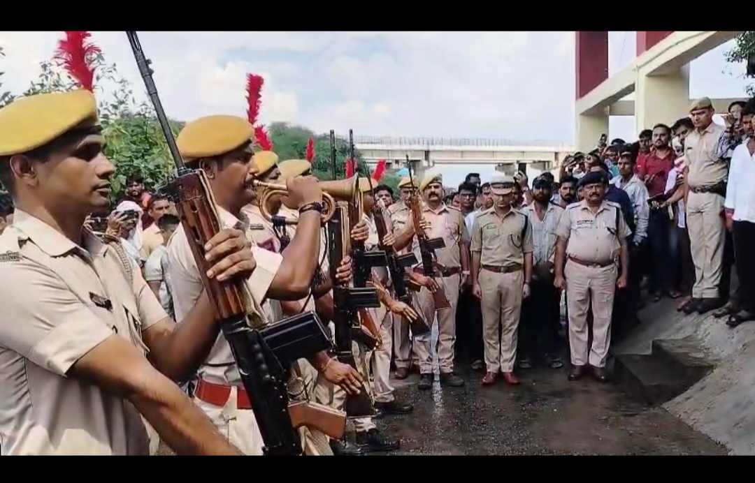 दौसा सड़क हादसे में शहीद हुए धौलपुर पुलिस के जांबाज कांस्टेबल संदीप शर्मा को गुरुवार को जिला मुख्यालय स्थित चंबल मुक्तिधाम पर राजकीय सम्मान के साथ अंतिम विदाई दी गई। परिजनों और पुलिस के जवानों ने तिरंगे में लिपटी अर्थी को कंधा दिया। पुलिस अधीक्षक विकास सांगवान सहित अधिकारियों ने पुष्पचक्र अर्पित कर उन्हें श्रद्धांजलि दी।