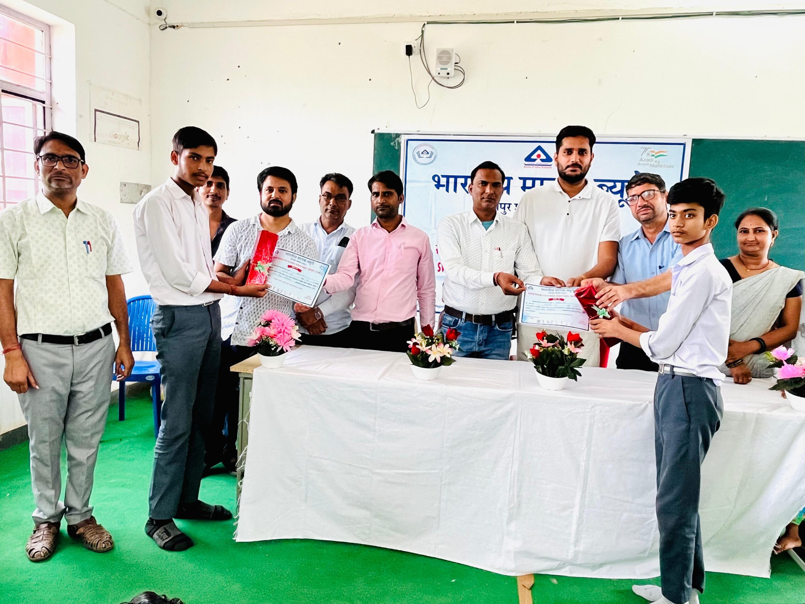 विद्यालय के प्रधानाचार्य श्री मुकेश कुमार कौशल ने प्रतियोगिता के विजेताओं को पुरस्कृत किया। उन्होंने विद्यार्थियों से कहा कि वे अपने जीवन में भी मानक निर्धारित कर नियमित अध्ययन और अनुशासन का पालन करें। साथ ही भारतीय मानक ब्यूरो की इस पहल की सराहना करते हुए इसे छात्रों के लिए बेहद उपयोगी बताया।
