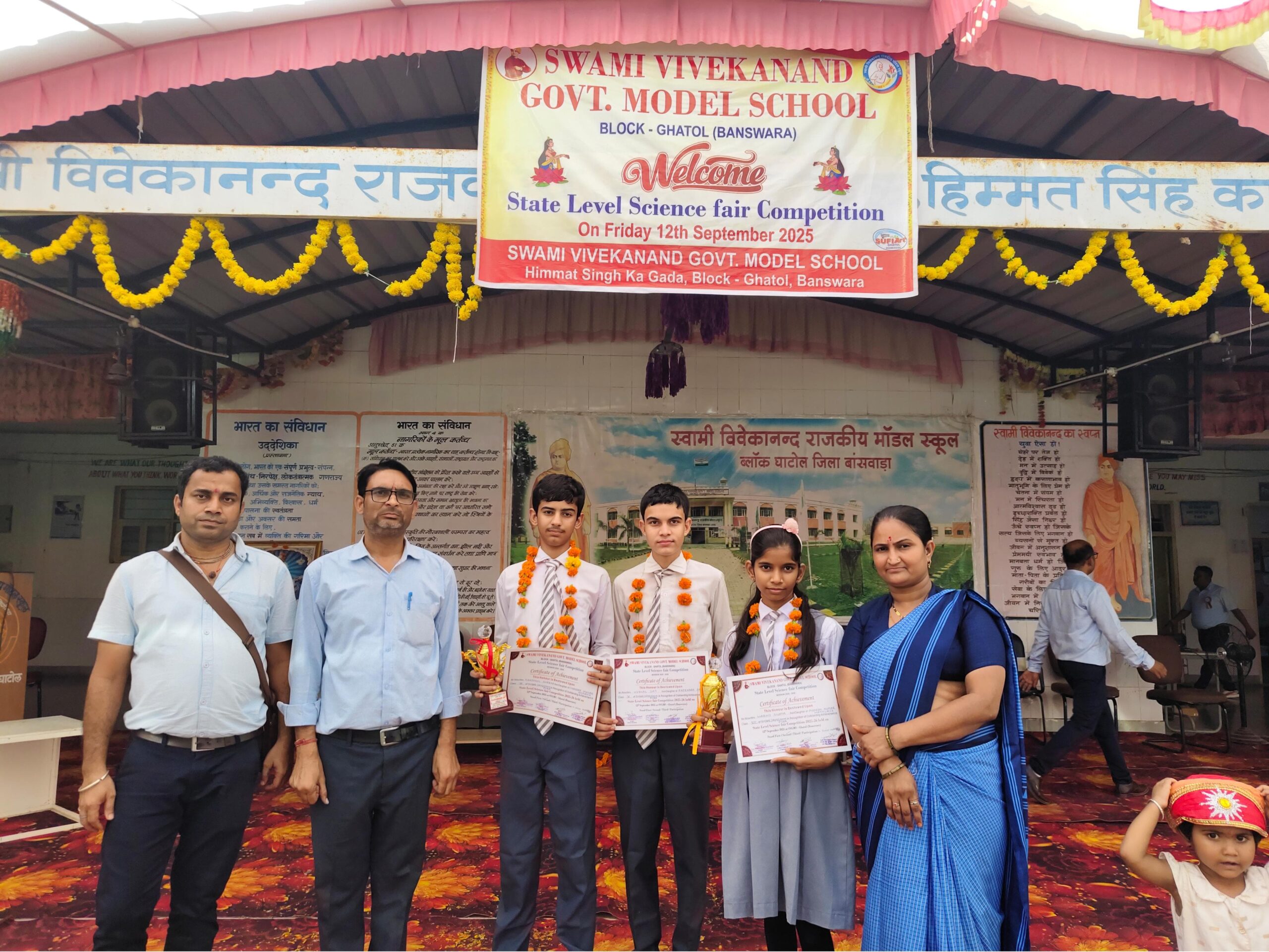 सीनियर वर्ग में कक्षा 10 के छात्र हर्षुल शर्मा और जूनियर वर्ग में कक्षा 7 की गार्गी गुप्ता ने दूसरा स्थान प्राप्त किया। यह प्रतियोगिता घाटोल, बांसवाड़ा में आयोजित हुई थी। विद्यालय के विज्ञान शिक्षक बृजेंद्र शर्मा ने बताया कि दोनों बच्चों ने अपने मॉडल्स से निर्णायकों और दर्शकों का मन मोह लिया।